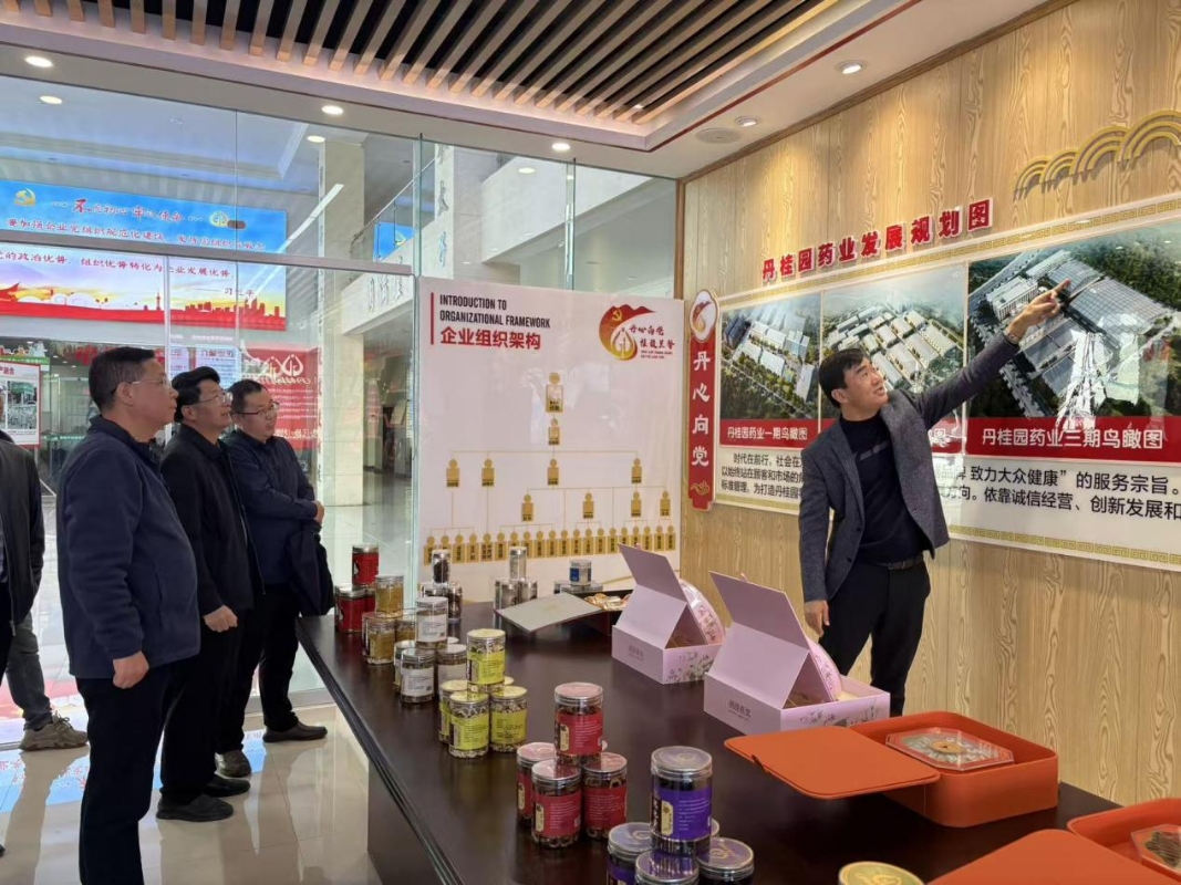 11月22日,团队赴湖南丹桂园医药有限公司参观调研,公司执行总裁邱展聪热情接待了唐荣华一行。团队实地走访了中药材种植基地、中药加工厂房、企业文化展厅等地,全面了解丹桂园药业的发展历程、业务范围、技术优势及人才需求。
