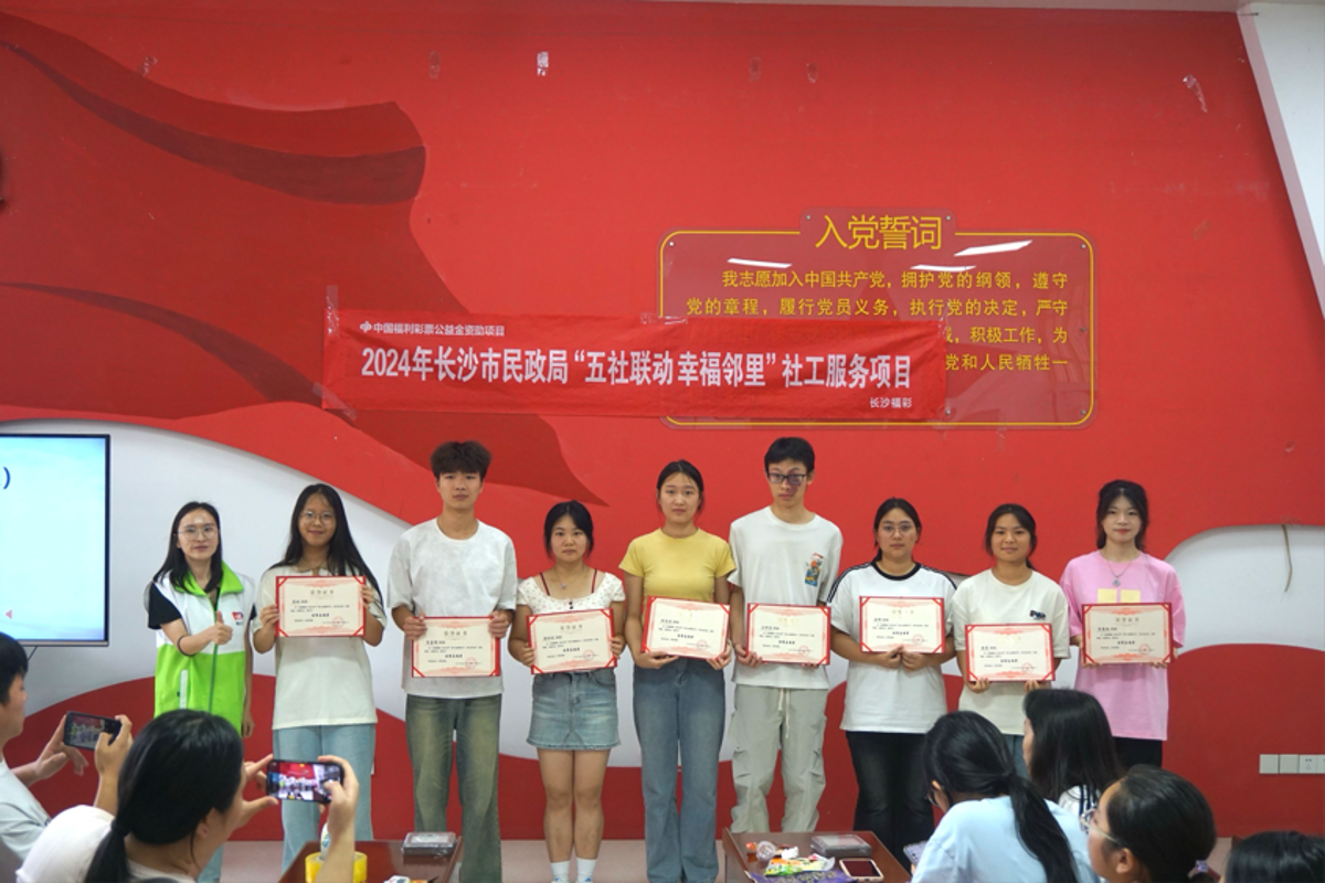 夏至清风送爽,志愿星光熠熠。6月21日上午,植物科技学院、信息技术学院联合“同行者”社工组织,于滨湖社区活动室隆重举办学期志愿者表彰会。两院青年志愿者齐聚一堂,通过趣味互动与荣誉嘉奖,重温服务初心,凝聚团队力量,为社区志愿服务注入蓬勃朝气。