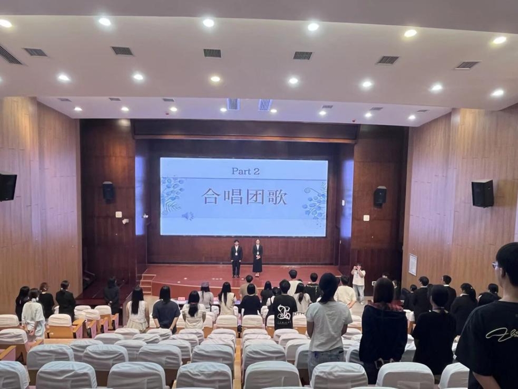 活动伊始,全场参会者起身肃立,齐声唱响《共青团团歌》。"我们是五月的花海,用青春拥抱时代"的激昂旋律回荡在报告厅内,不仅拉开了竞选的序幕,更凝聚了在场每一位青年学子的信念与热情。