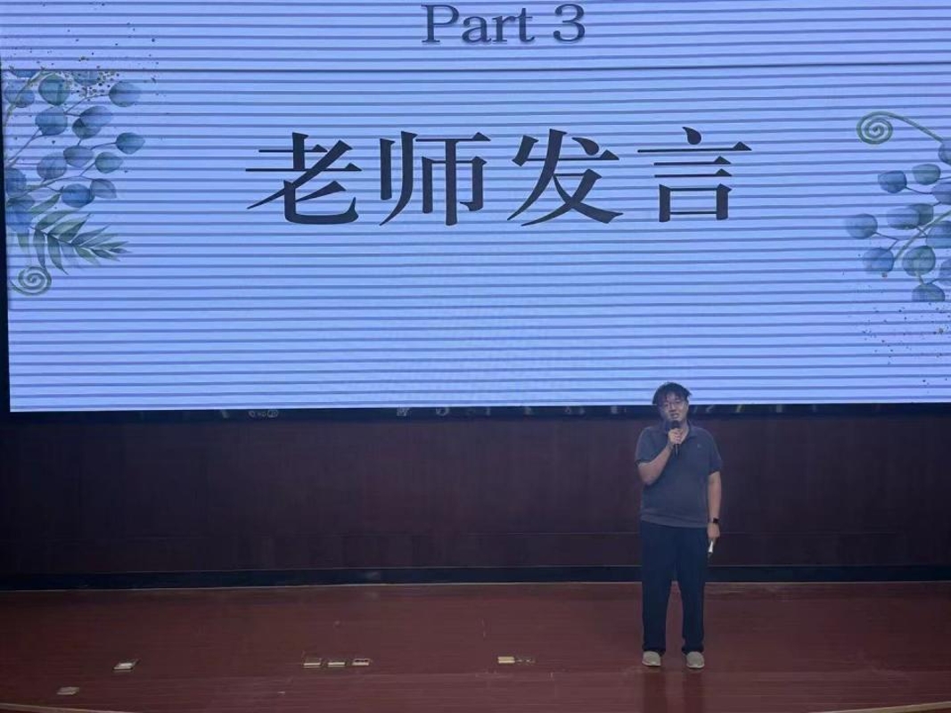 随后,植物科技学院团总支书记周玮峰老师上台发言。他首先肯定了上一届团学两会成员的实干成果,对大家的辛勤付出表示认可;接着以"坚守服务初心、锤炼过硬本领"为核心,向在场干事们提出成长嘱托,寄予了对团学两会未来发展的殷切期待。