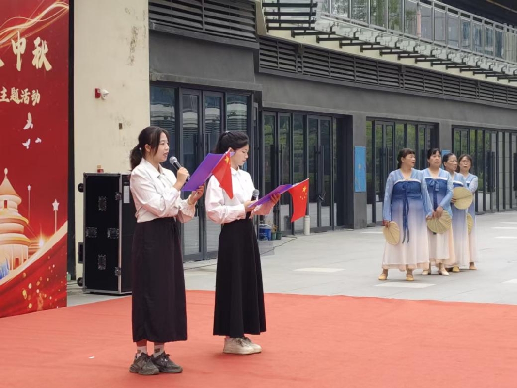 随后,植物科技学院学生党员代表李颖、杨慧敏登台,以一篇题为《月圆九州贺华诞,青春聚力谱新章》的朗读,诉说对祖国发展的自豪、对民族团结的珍视,真挚情感让现场居民频频共鸣。紧接着,学院4名学子携手带来合唱《我和我的祖国》,熟悉旋律响起时,居民、青少年纷纷随节奏哼唱,手中国旗轻轻挥舞,浓浓的爱国之情在现场流淌,将活动氛围推向高潮。